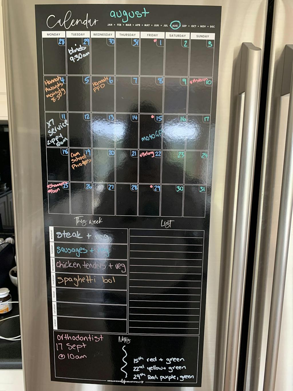 Loving this fridge calendar, stops all the questions from everyone of what is happening when, all they have to do is look at the calendar to find out.