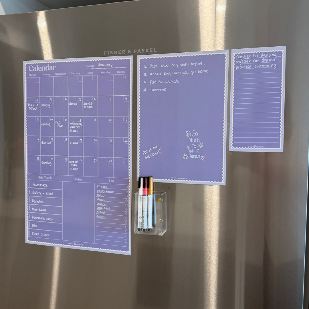 Designed for lovers of colour. The Limited Edition Planner Bundle is your go-to solution for a more organised, stress-free home. Designed to keep your entire household in sync, this magnetic planning kit transforms your fridge into a streamlined hub for schedules, goals, and reminders.
