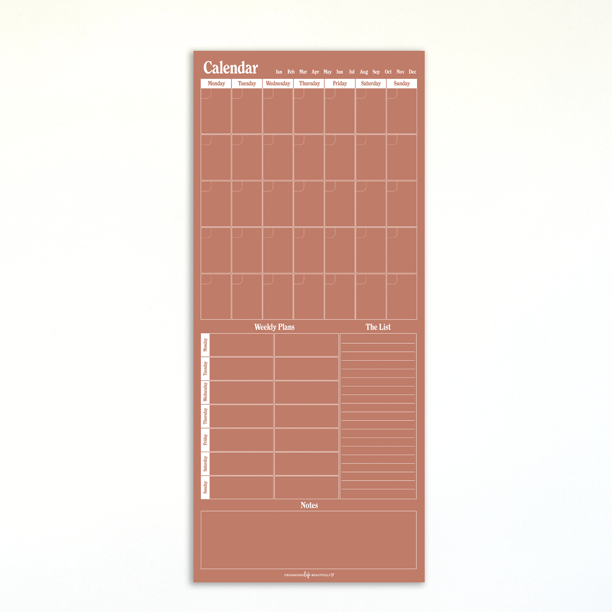 Our planners have a full magnetic backing that works best on magnetic metal surfaces. Some modern fridges (especially stainless steel or glass-front models) are non-magnetic – we suggest testing your fridge first or using adhesive strips or magnetic boards if needed.