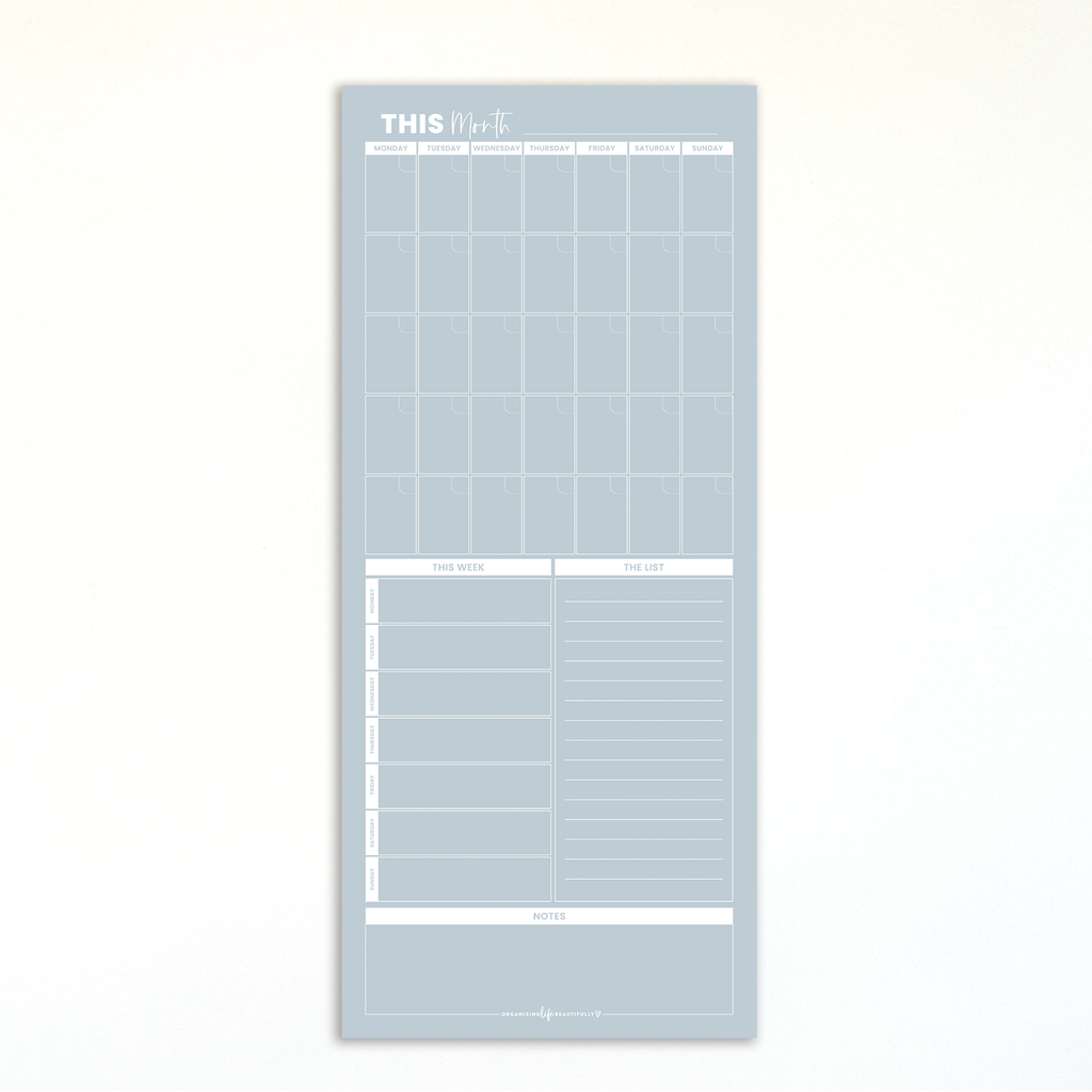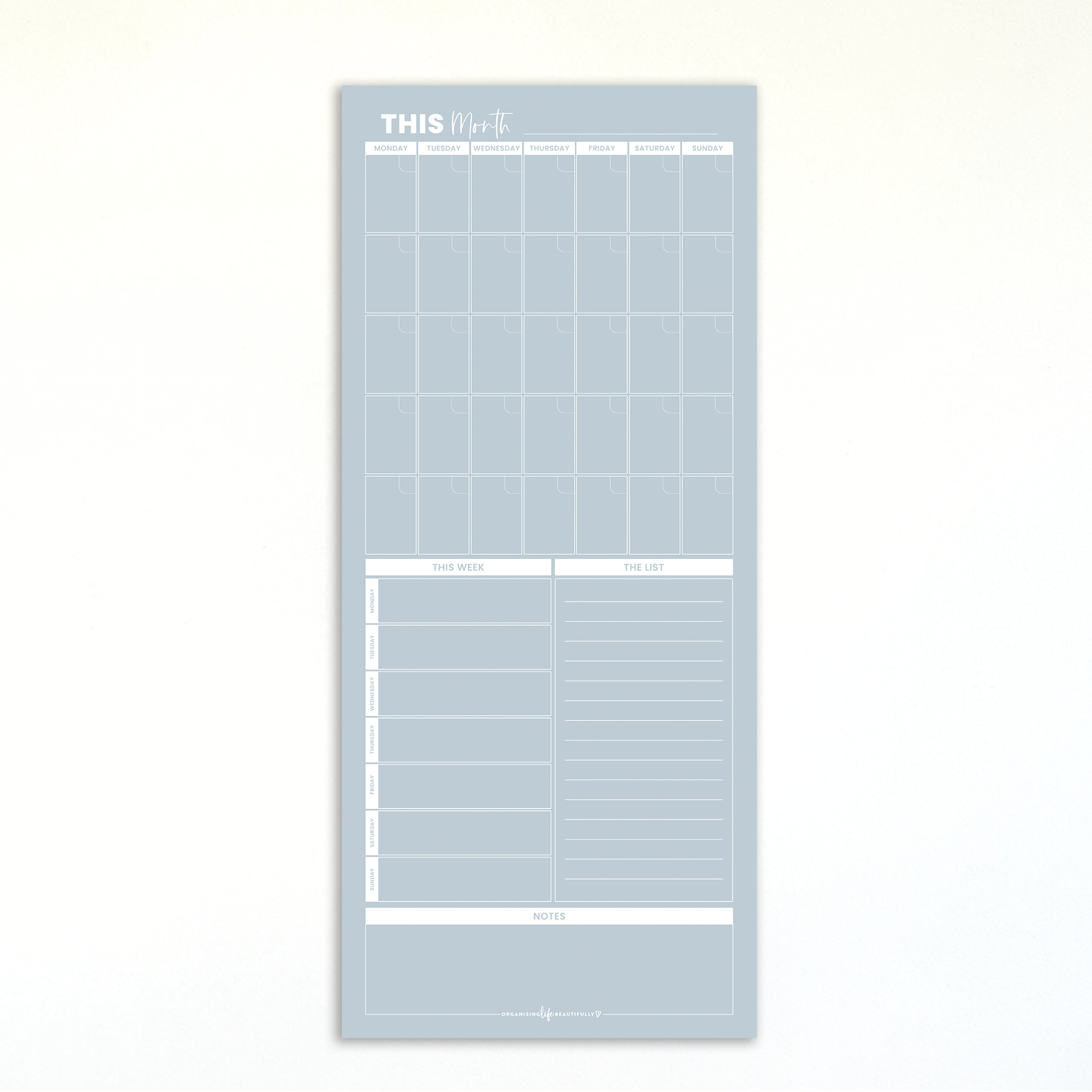 Our planners have a full magnetic backing that works best on magnetic metal surfaces. Some modern fridges (especially stainless steel or glass-front models) are non-magnetic – we suggest testing your fridge first or using adhesive strips or magnetic boards if needed.