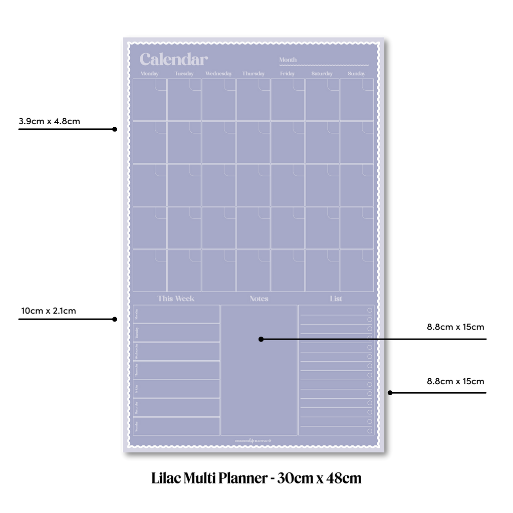 30x48cm Magnetic Multi Planner – with a calendar, weekly planner, to-do list, and notes section, so you can see your whole month at a glance.