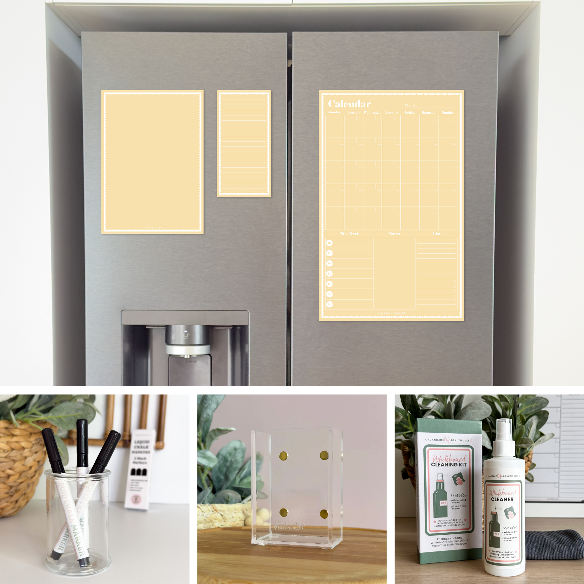 Designed for lovers of colour. The Limited Edition Planner Bundle is your go-to solution for a more organised, stress-free home. Designed to keep your entire household in sync, this magnetic planning kit transforms your fridge into a streamlined hub for schedules, goals, and reminders.