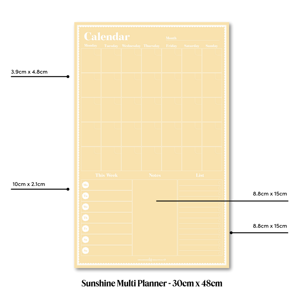 30x48cm Magnetic Multi Planner – with a calendar, weekly planner, to-do list, and notes section, so you can see your whole month at a glance.