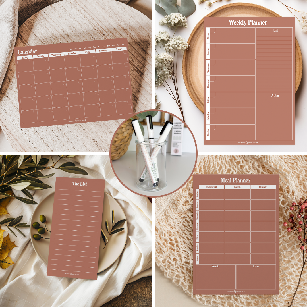 Designed in our stunning rust colourway, this coordinating set includes every planner you need to manage meals, routines, appointments and shopping lists in one beautiful, accessible hub.
