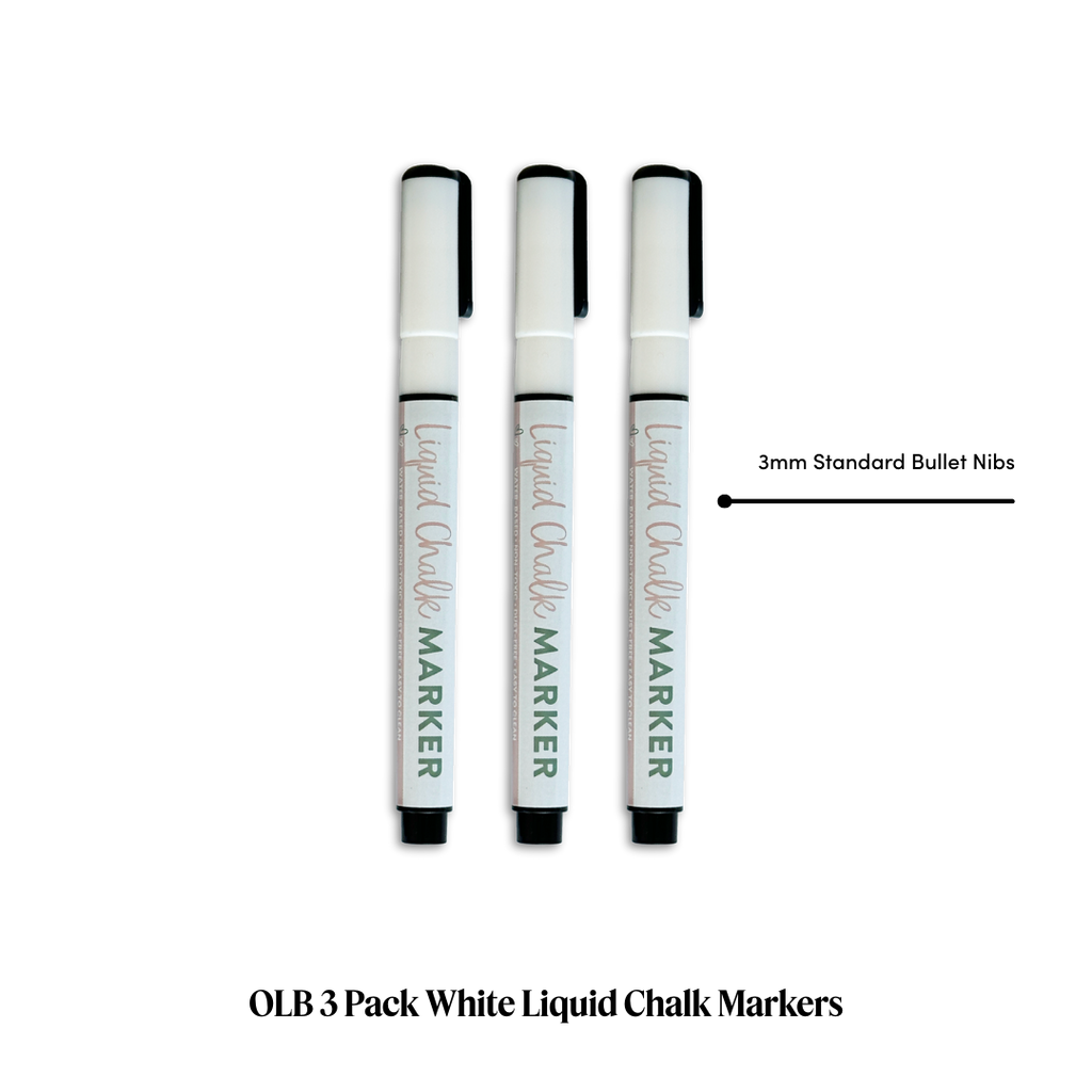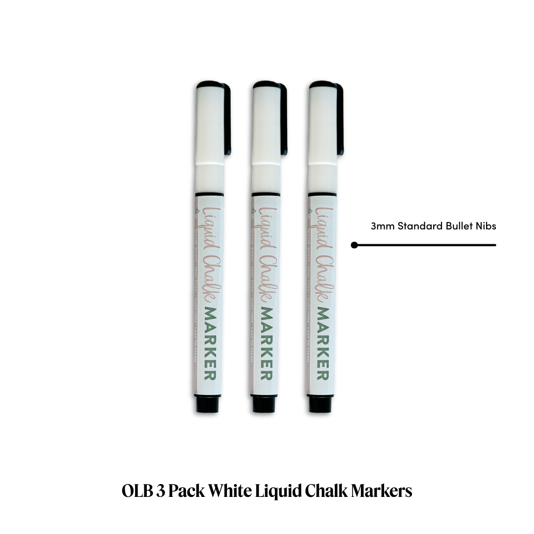 3 x OLB White Liquid Chalk Markers (3mm reversible nib)