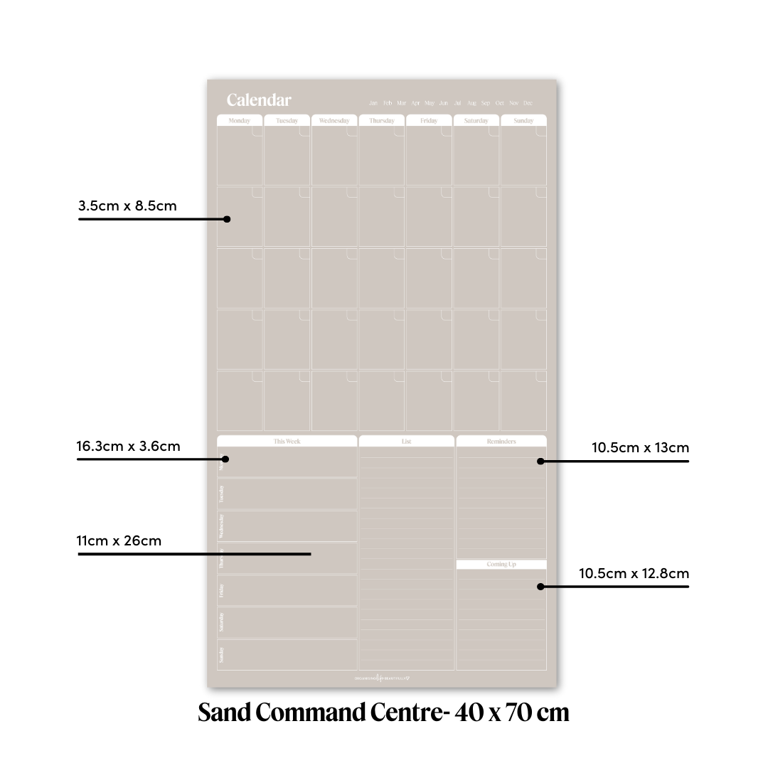 Peel & Stick Wall Planner | Reusable Command Centre • 40x70cm • Sand