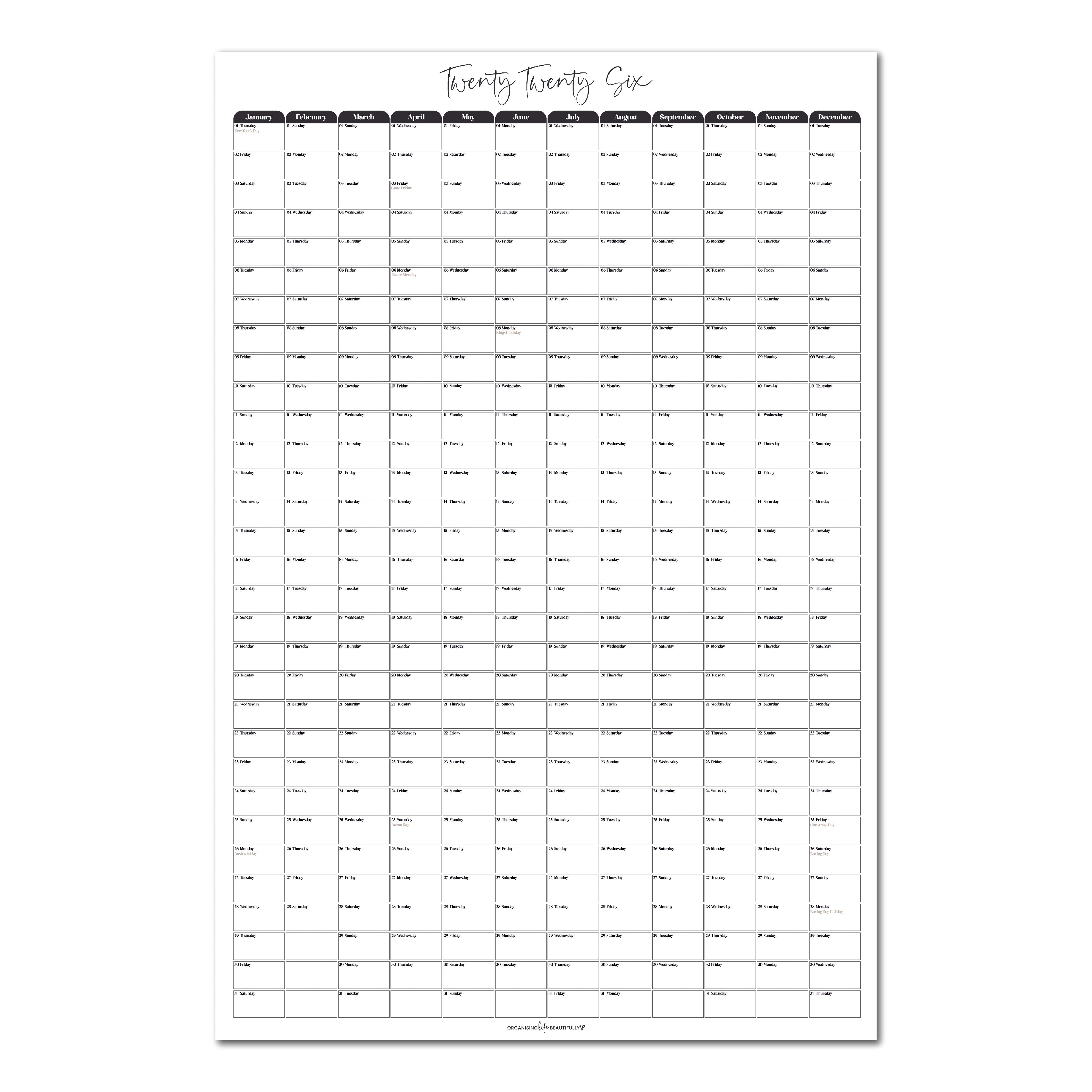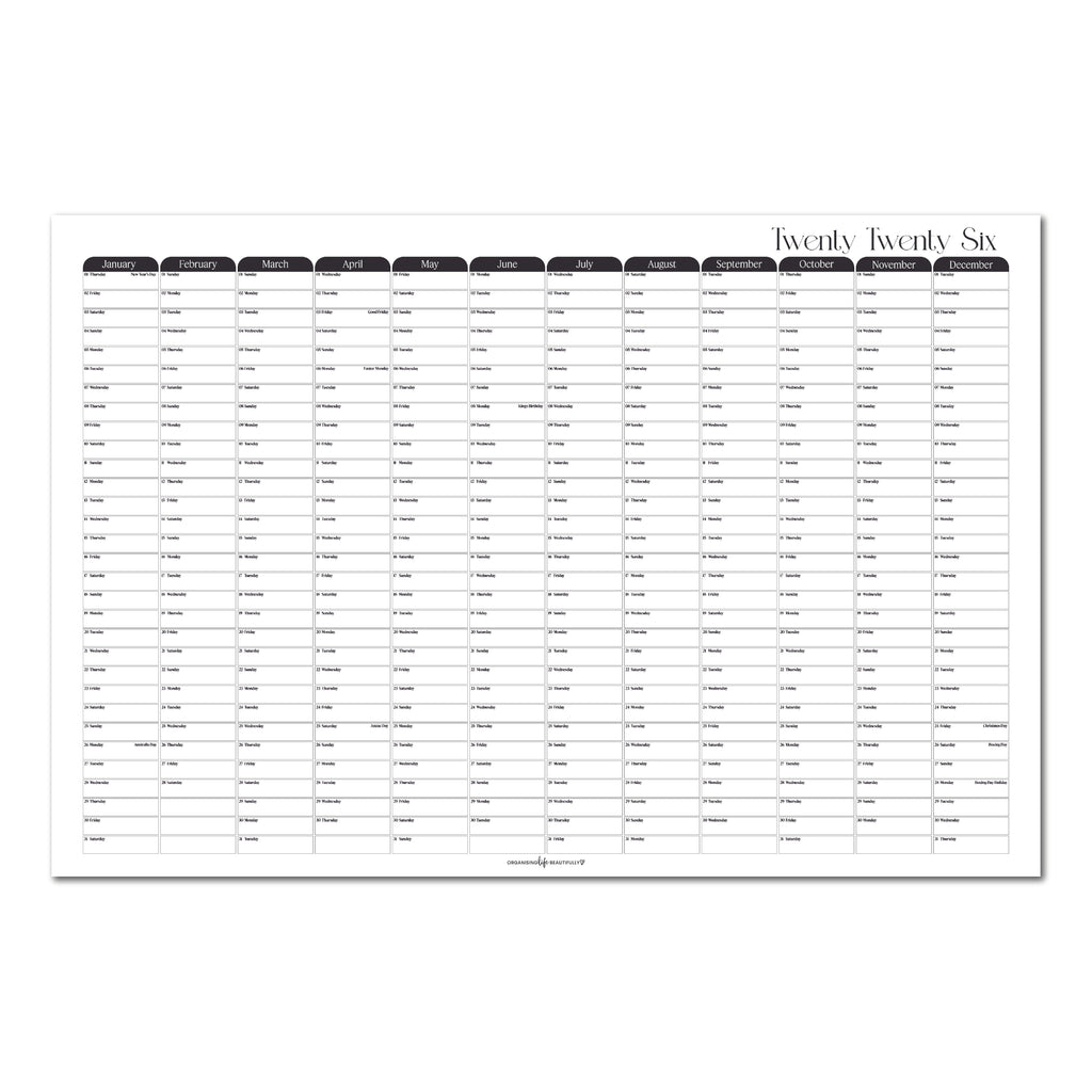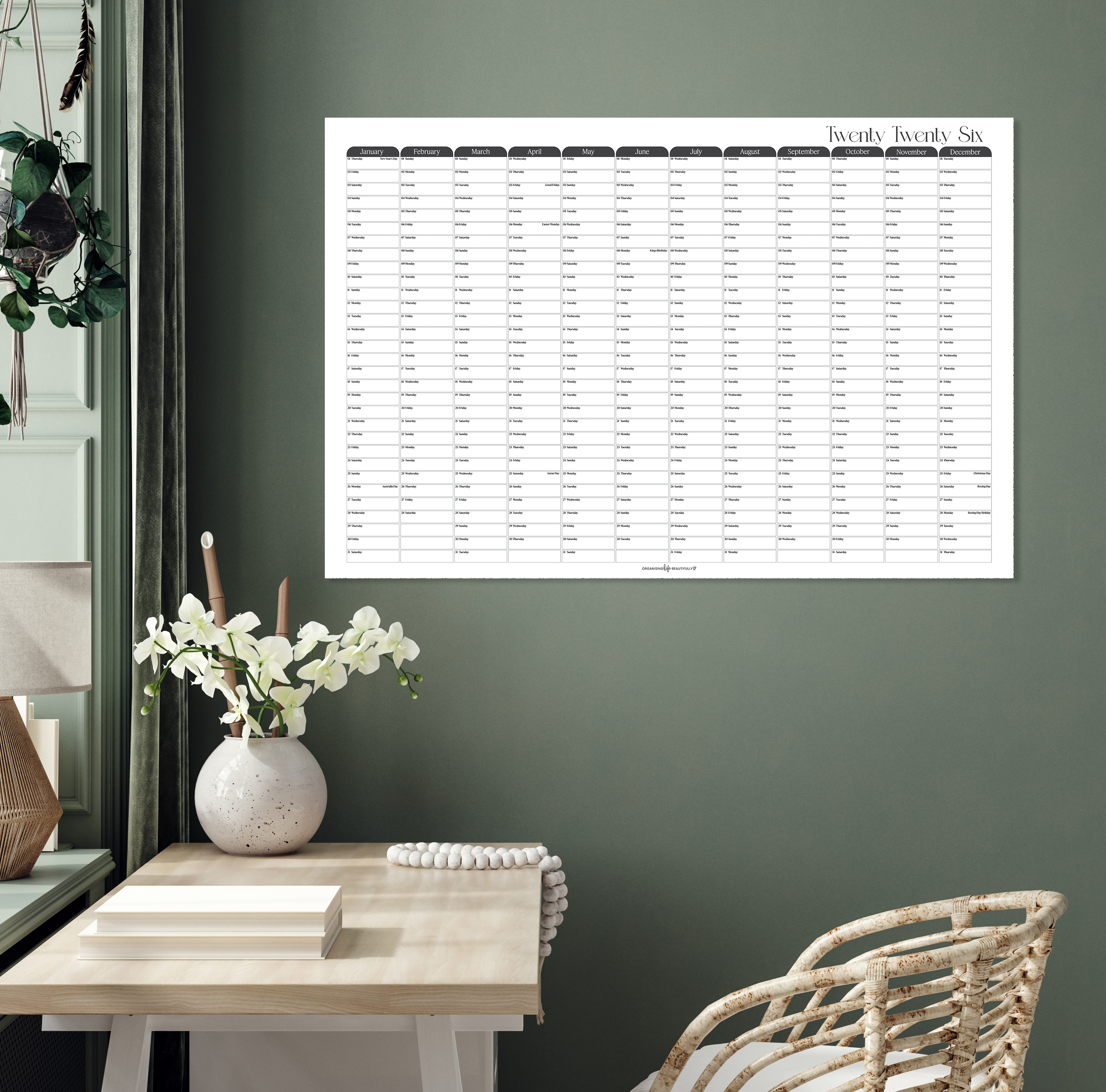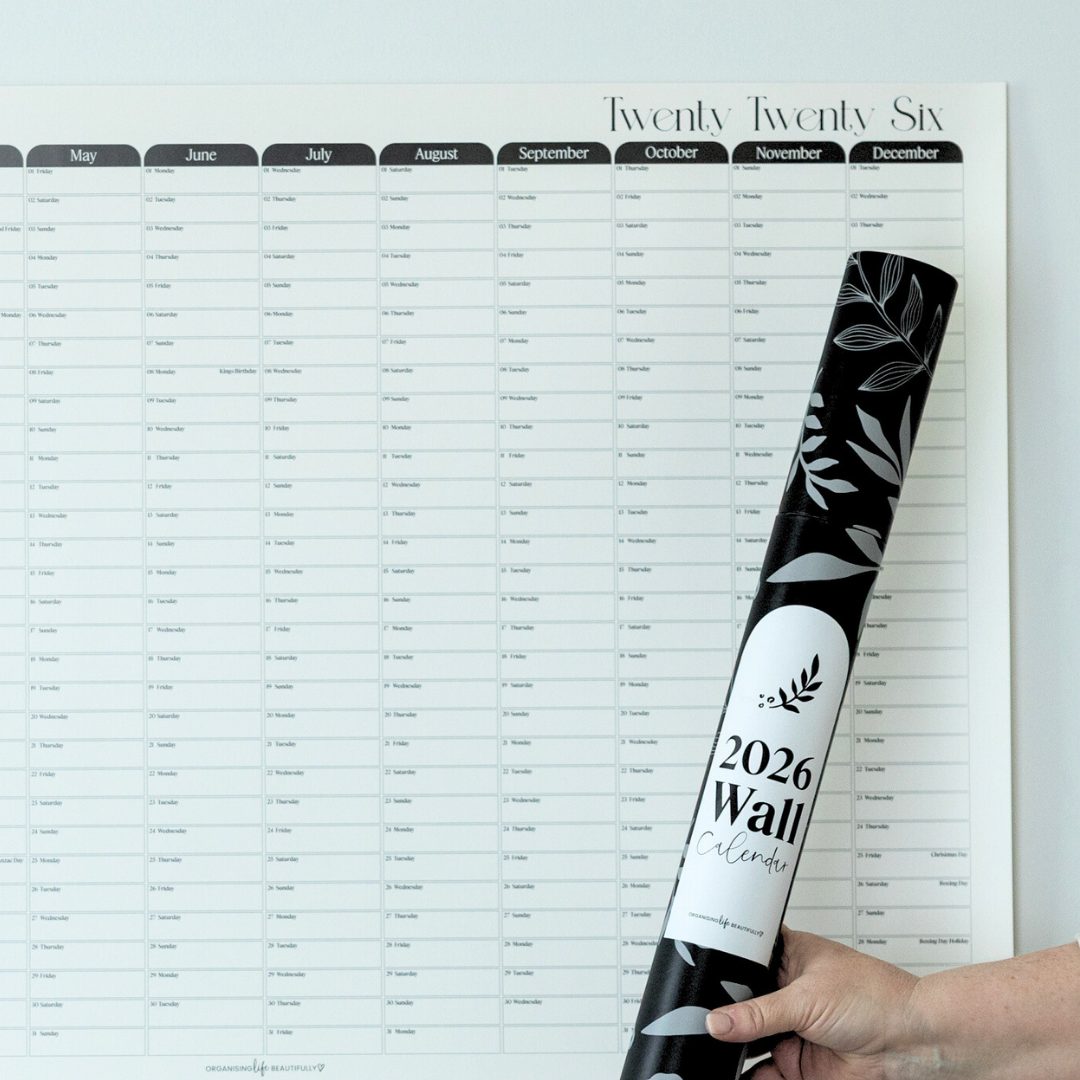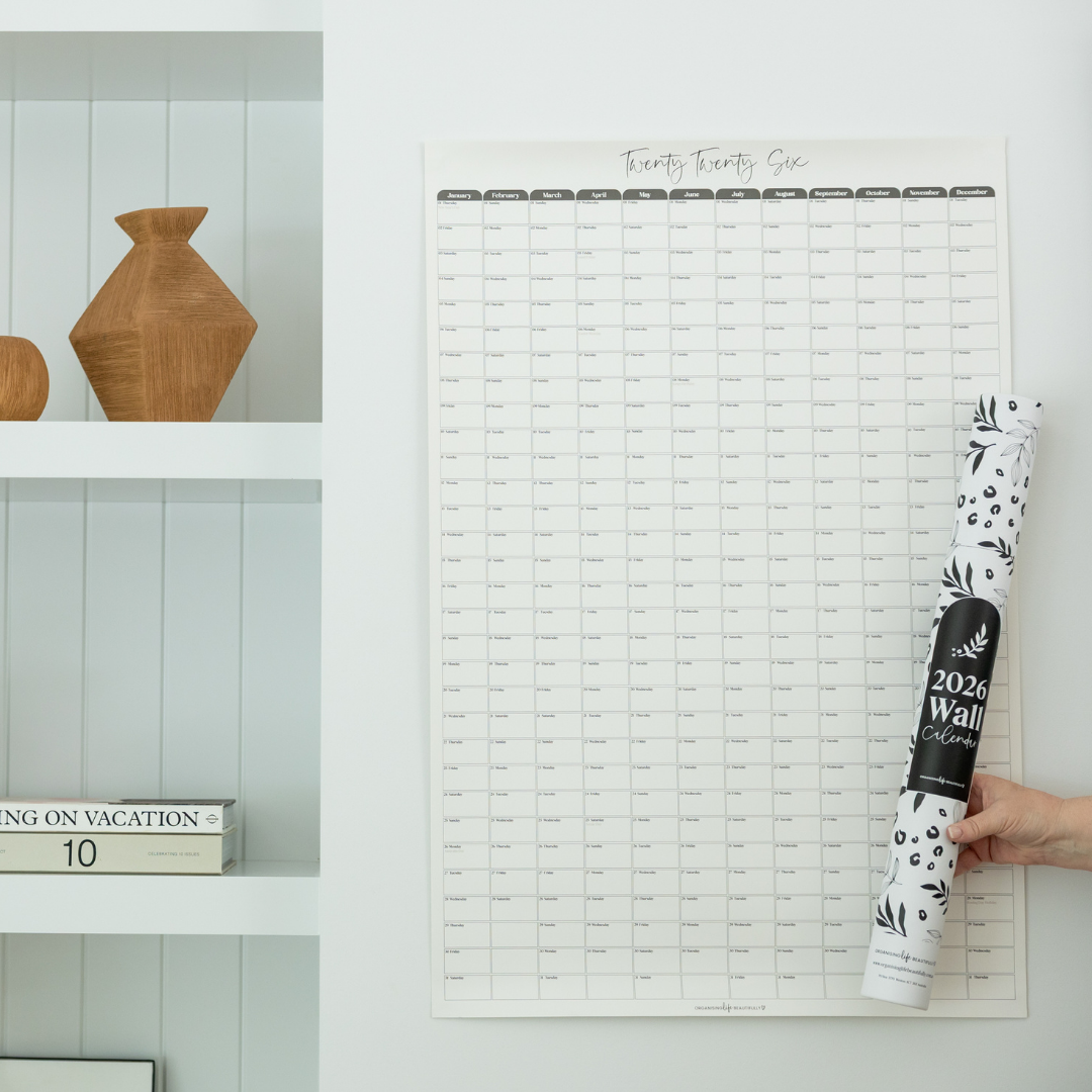 This 2026 large-format wall calendar is designed to give you a clear view of your year ahead, with generous writing space and a timeless black and white design that suits any room. Printed on luxe 300gsm uncoated poster stock and featuring Australian public holidays, it’s a bold and practical addition to any organised space.