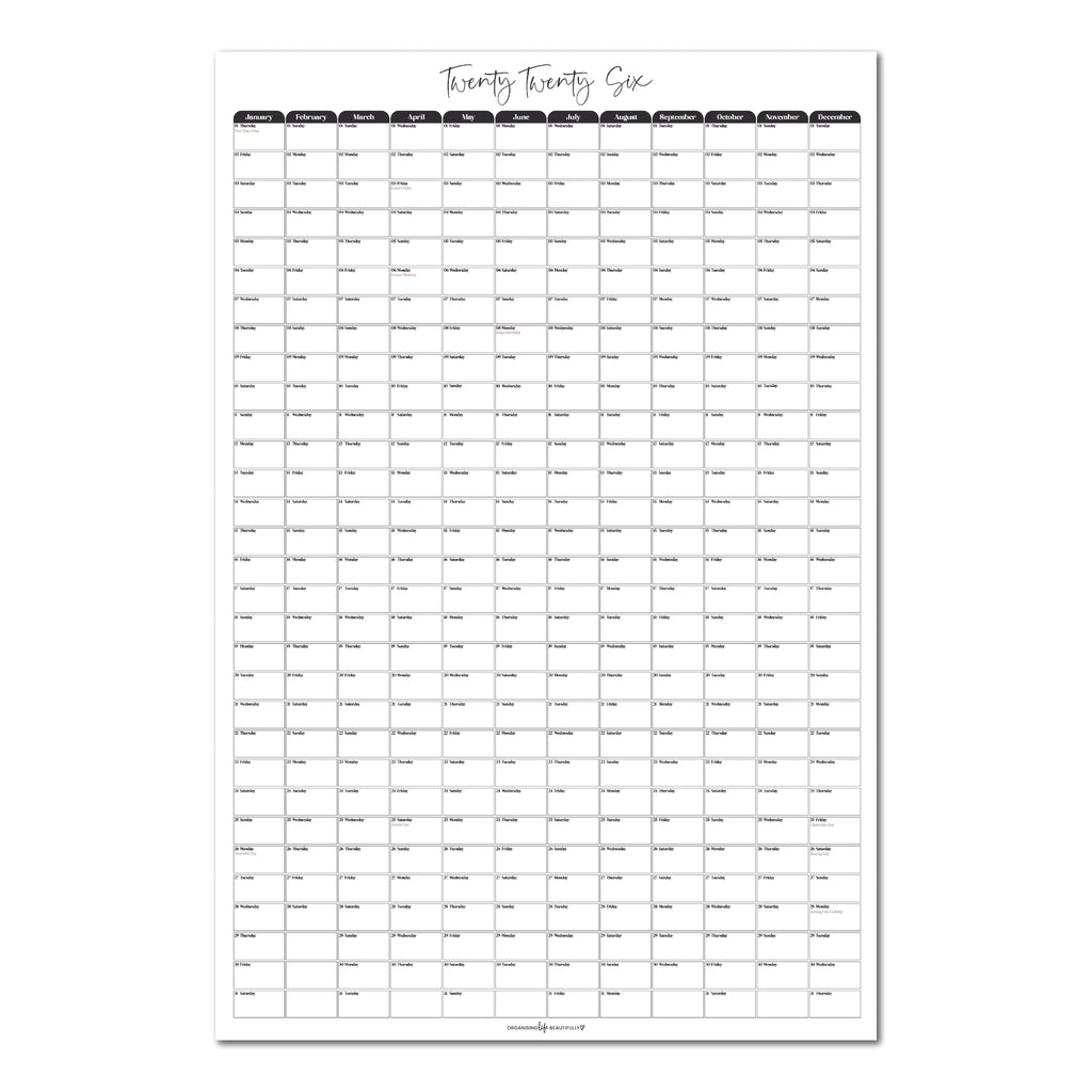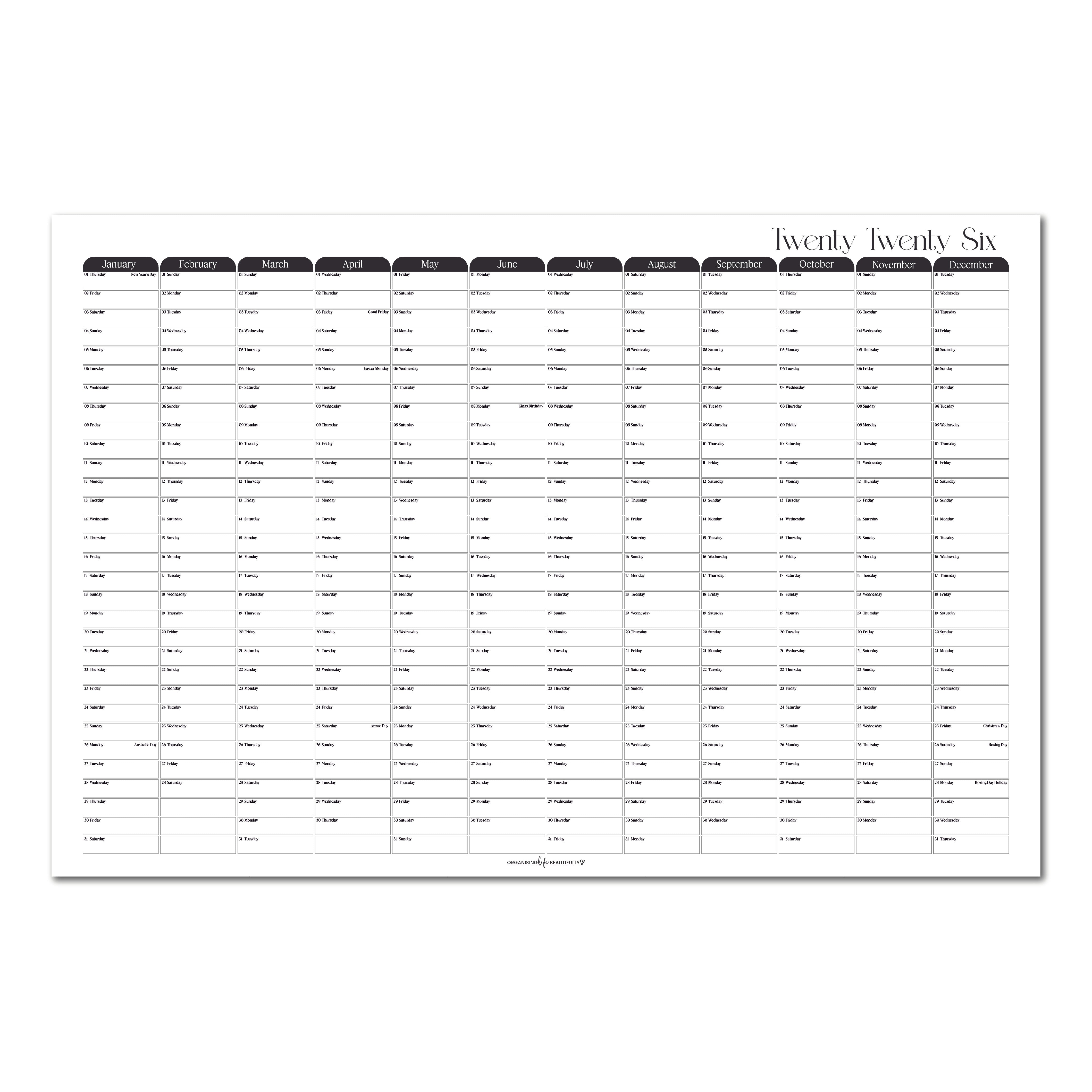 Available in both portrait and landscape layouts, with box sizes tailored for real-life planning (4.7cm x 2.5cm in portrait, 6.9cm x 1.6cm in landscape), this calendar is perfect for busy households, workplaces, classrooms or goal-setters who like to see the full picture.