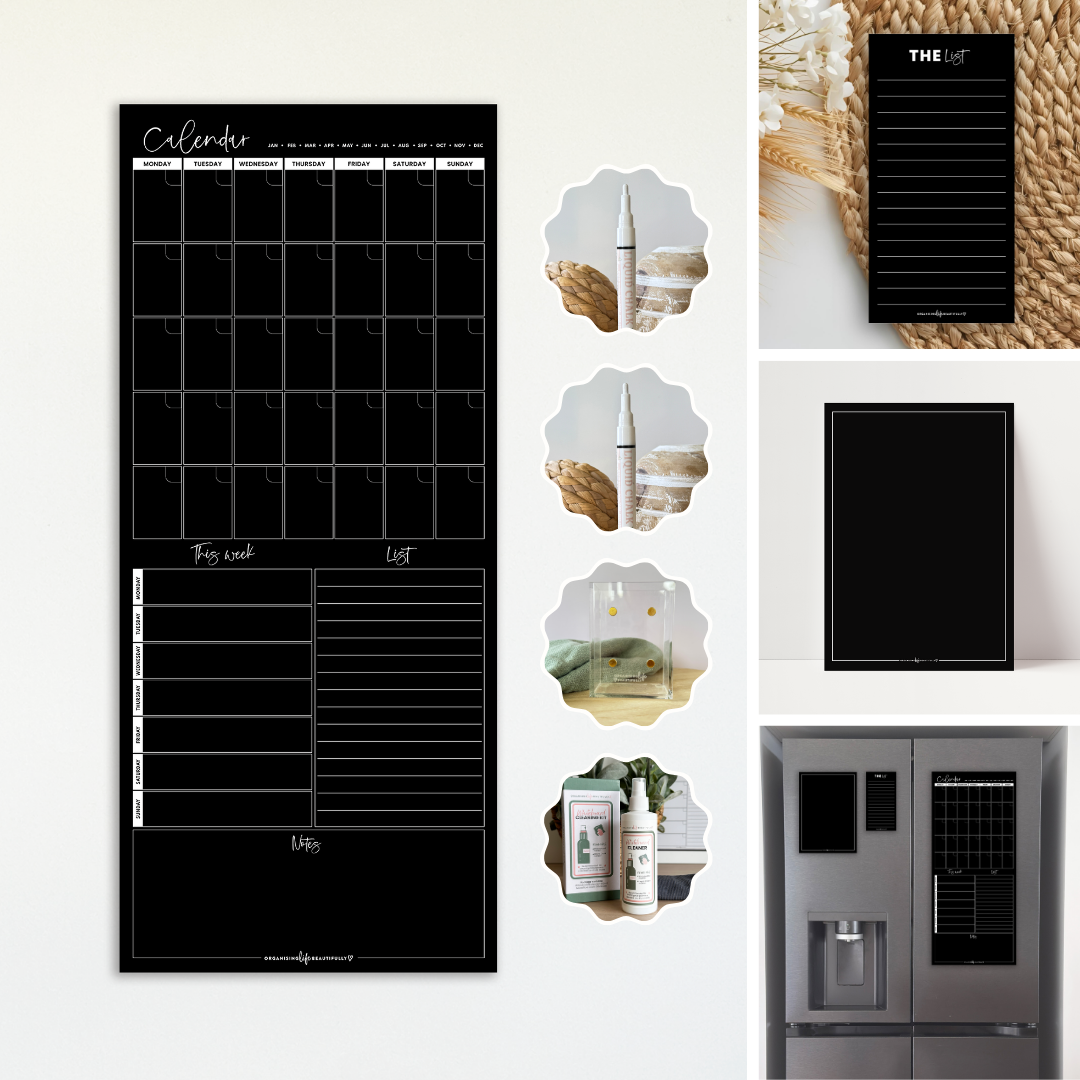[{"id":412156494062,"handle":"essentials-black","title":"Black","updated_at":"2025-12-25T23:06:30+11:00","body_html":"\u003ch3 style=\"text-align: center;\"\u003e\n\u003cmeta charset=\"utf-8\"\u003e \u003cstrong data-end=\"253\" data-start=\"221\"\u003eBold, minimal, and timeless.\u003c\/strong\u003e\n\u003c\/h3\u003e\n\u003cp style=\"text-align: center;\"\u003eThe Black Magnetic Planner Range is a customer favourite for good reason—it blends seamlessly into any kitchen or workspace while making your weekly schedule, meals, and to-dos stand out. Perfect for those who love a monochrome aesthetic and crave clarity at a glance.\u003c\/p\u003e","published_at":"2022-10-22T19:50:59+11:00","sort_order":"manual","template_suffix":"","disjunctive":false,"rules":[{"column":"tag","relation":"equals","condition":"black"},{"column":"type","relation":"not_equals","condition":"giftbox_ghost_product"},{"column":"title","relation":"not_contains","condition":"Liquid Chalk"},{"column":"title","relation":"not_contains","condition":"Laminated"}],"published_scope":"global"},{"id":401842798830,"handle":"blush","title":"Blush","updated_at":"2025-12-23T23:10:43+11:00","body_html":"\u003ch3 style=\"text-align: center;\"\u003e\n\u003cmeta charset=\"utf-8\"\u003e \u003cstrong data-end=\"1187\" data-start=\"1145\"\u003eSoft, subtle, and beautifully calming.\u003c\/strong\u003e\n\u003c\/h3\u003e\n\u003cp style=\"text-align: center;\"\u003eThe Blush range is designed for those who want their organisation tools to feel as gentle as they are practical. Ideal for busy mums, students, or home offices craving a touch of feminine elegance without fuss. \u003cspan style=\"text-align: center; font-family: -apple-system, BlinkMacSystemFont, 'San Francisco', 'Segoe UI', Roboto, 'Helvetica Neue', sans-serif; font-size: 0.875rem;\"\u003e\u003c\/span\u003e\u003cspan\u003e\u003c\/span\u003e\u003cspan\u003e\u003c\/span\u003e\u003c\/p\u003e","published_at":"2022-03-16T15:43:25+11:00","sort_order":"best-selling","template_suffix":"","disjunctive":false,"rules":[{"column":"tag","relation":"equals","condition":"Blush"},{"column":"type","relation":"not_equals","condition":"giftbox_ghost_product"}],"published_scope":"global"},{"id":271448834198,"handle":"bundles","title":"Bundles","updated_at":"2025-12-19T18:57:43+11:00","body_html":"\u003cdiv style=\"text-align: center;\"\u003e\u003c\/div\u003e\n\u003cdiv style=\"text-align: center;\"\u003e\n\u003cspan style=\"color: #809485;\"\u003e\u003cem\u003e\u003cstrong\u003e\u003c\/strong\u003e\u003c\/em\u003e\u003c\/span\u003e\u003cbr\u003e\n\u003c\/div\u003e\n\u003cdiv style=\"text-align: center;\"\u003e\n\u003cspan style=\"color: #809485;\"\u003e\u003cem\u003e\u003cstrong\u003e\u003c\/strong\u003e\u003c\/em\u003e\u003c\/span\u003e\u003cbr\u003e\n\u003c\/div\u003e","published_at":"2021-07-06T11:53:50+10:00","sort_order":"manual","template_suffix":"","disjunctive":false,"rules":[{"column":"title","relation":"contains","condition":"Bundle"},{"column":"type","relation":"not_equals","condition":"giftbox_ghost_product"},{"column":"variant_inventory","relation":"greater_than","condition":"1"}],"published_scope":"global"},{"id":462910914798,"handle":"new-1","updated_at":"2025-12-26T17:30:05+11:00","published_at":"2025-12-02T17:16:40+11:00","sort_order":"manual","template_suffix":"","published_scope":"global","title":"New Arrivals","body_html":""},{"id":429969670382,"handle":"oatmeal","title":"Oatmeal","updated_at":"2025-12-24T23:11:26+11:00","body_html":"\u003ch3 style=\"text-align: center;\"\u003e\n\u003cmeta charset=\"utf-8\"\u003e \u003cstrong data-end=\"2059\" data-start=\"2020\"\u003eNeutral, warm, and quietly stylish.\u003c\/strong\u003e\n\u003c\/h3\u003e\n\u003cp style=\"text-align: center;\"\u003eOatmeal is your go-to if you love the look of clean organisation without loud colours. It pairs beautifully with timber accents and white goods, making it an easy win for minimalist homes.\u003c\/p\u003e","published_at":"2024-04-23T17:02:10+10:00","sort_order":"best-selling","template_suffix":"","disjunctive":false,"rules":[{"column":"tag","relation":"equals","condition":"Oatmeal"},{"column":"type","relation":"not_equals","condition":"giftbox_ghost_product"}],"published_scope":"global"},{"id":457738125550,"handle":"rust","title":"Rust","updated_at":"2025-12-25T23:06:30+11:00","body_html":"\u003ch3 style=\"text-align: center;\"\u003e\n\u003cmeta charset=\"utf-8\"\u003e \u003cstrong data-end=\"596\" data-start=\"556\"\u003eWarm, earthy, and quietly confident.\u003c\/strong\u003e\n\u003c\/h3\u003e\n\u003cp style=\"text-align: center;\"\u003eThe Rust range brings a grounding tone to your space while helping you stay on top of your busy life. Ideal for planners who love a natural palette with a bold twist—it’s where function meets understated style.\u003c\/p\u003e","published_at":"2025-08-27T13:37:21+10:00","sort_order":"best-selling","template_suffix":"","disjunctive":false,"rules":[{"column":"tag","relation":"equals","condition":"rust"},{"column":"type","relation":"not_equals","condition":"giftbox_ghost_product"}],"published_scope":"global"},{"id":409363710190,"handle":"sage","title":"Sage","updated_at":"2025-12-24T23:11:26+11:00","body_html":"\u003ch3 style=\"text-align: center;\"\u003e\n\u003cmeta charset=\"utf-8\"\u003e\n\u003cstrong data-start=\"1701\" data-end=\"1734\"\u003eA bestseller for good reason.\u003c\/strong\u003e\n\u003c\/h3\u003e\n\u003cp style=\"text-align: center;\"\u003eThe Sage Magnetic Planners offer a soft, muted green tone that suits almost every home style—from modern to farmhouse. Customers say it transforms their fridge into a calming command centre for the whole family.\u003c\/p\u003e","published_at":"2022-08-13T17:53:33+10:00","sort_order":"best-selling","template_suffix":"","disjunctive":false,"rules":[{"column":"tag","relation":"equals","condition":"sage"},{"column":"type","relation":"not_equals","condition":"giftbox_ghost_product"}],"published_scope":"global"},{"id":