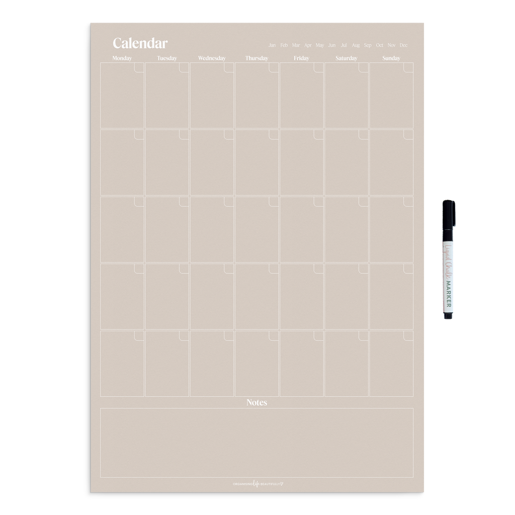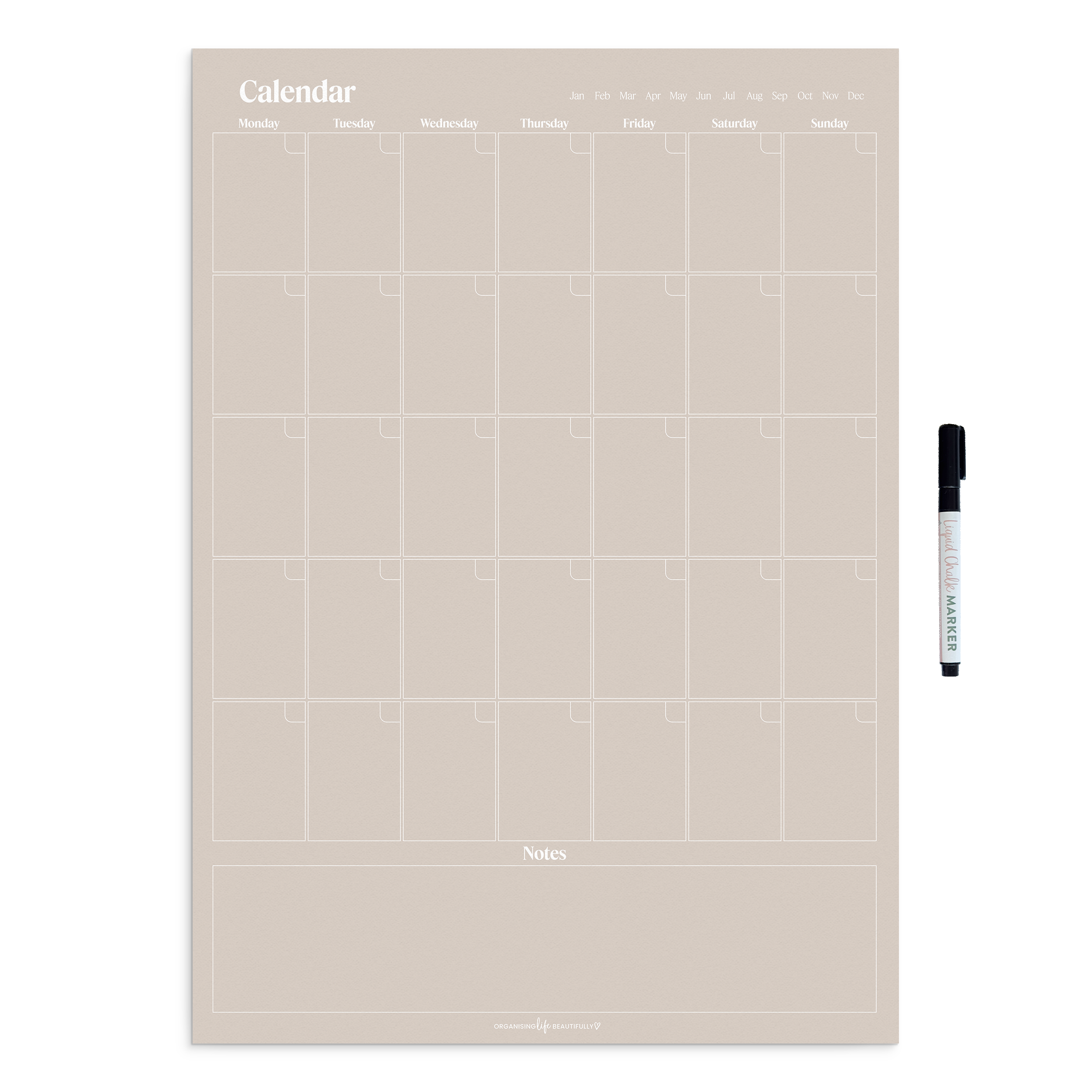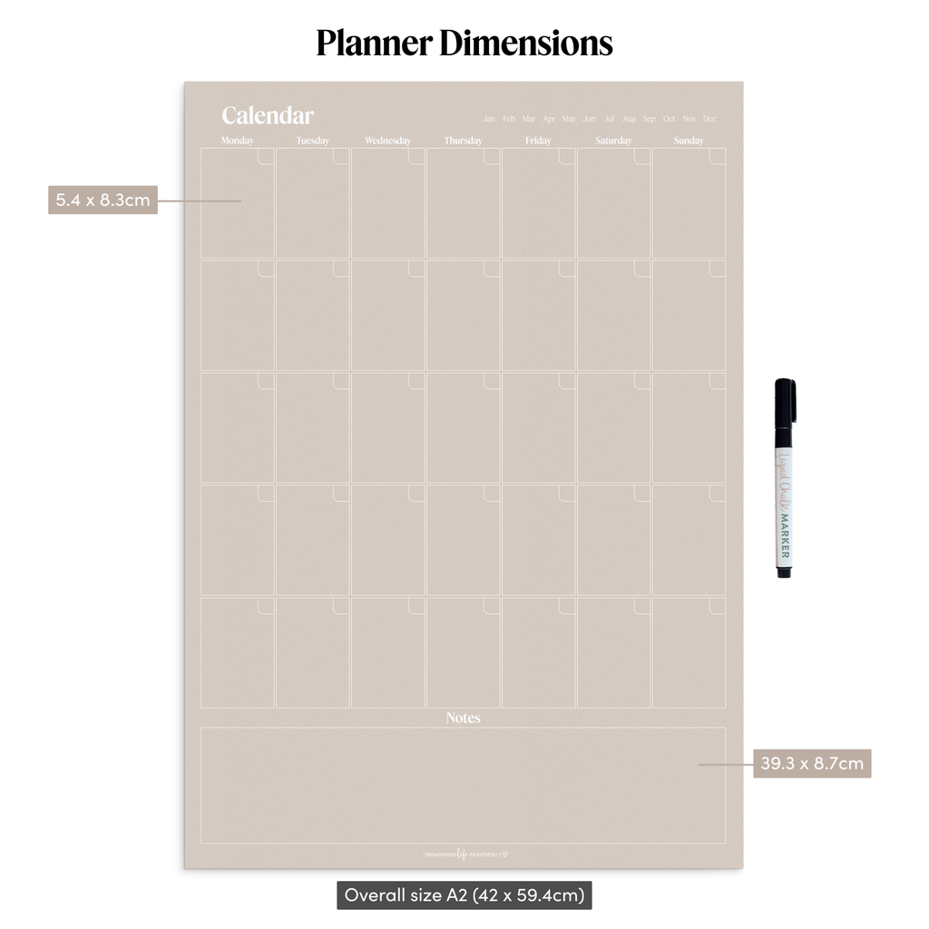 Peel & Stick Wall Planner | Reusable Monthly Calendar + Notes • A2 Size • Sand