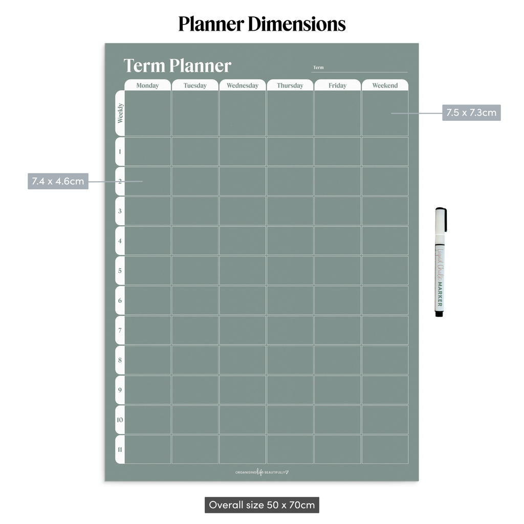 Peel & Stick Wall Planner | Reusable School Term Planner • 50x70cm • Fern