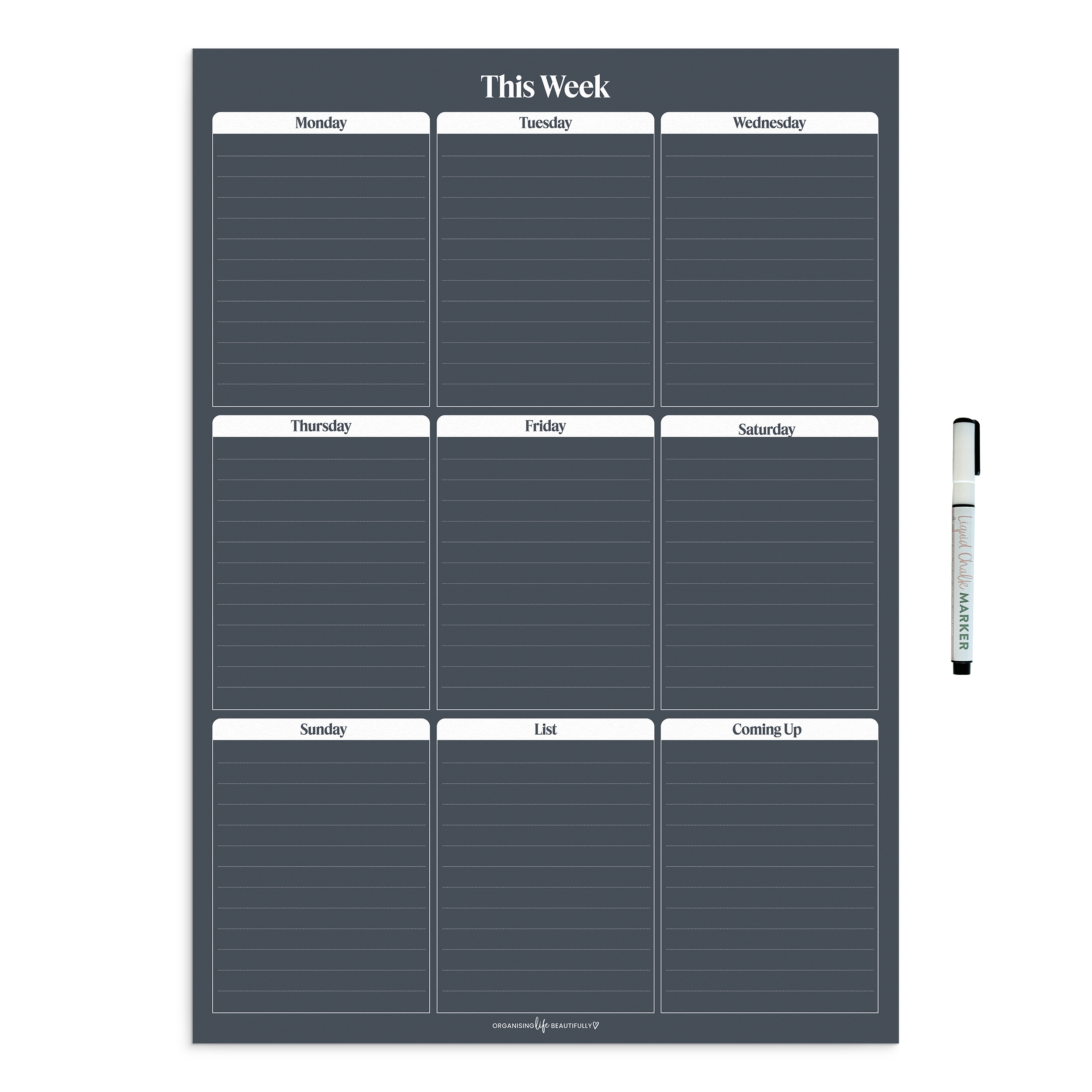Each planner comes with one of our NEW ultra fine liquid chalk markers.