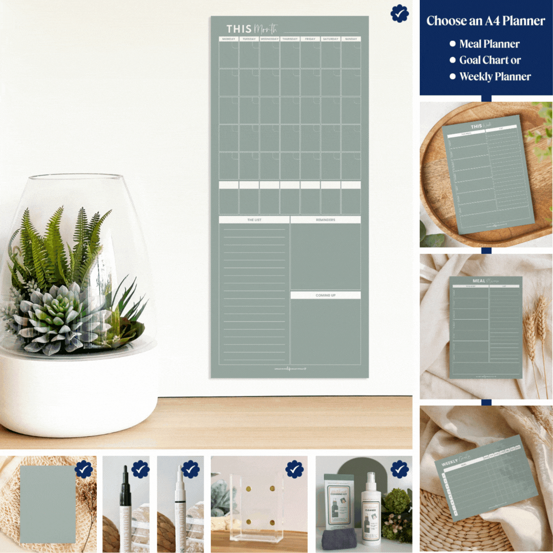 Your choice of A4 Planner – Weekly Goals Chart, Meal Planner, or Weekly Planner to suit your family’s needs.