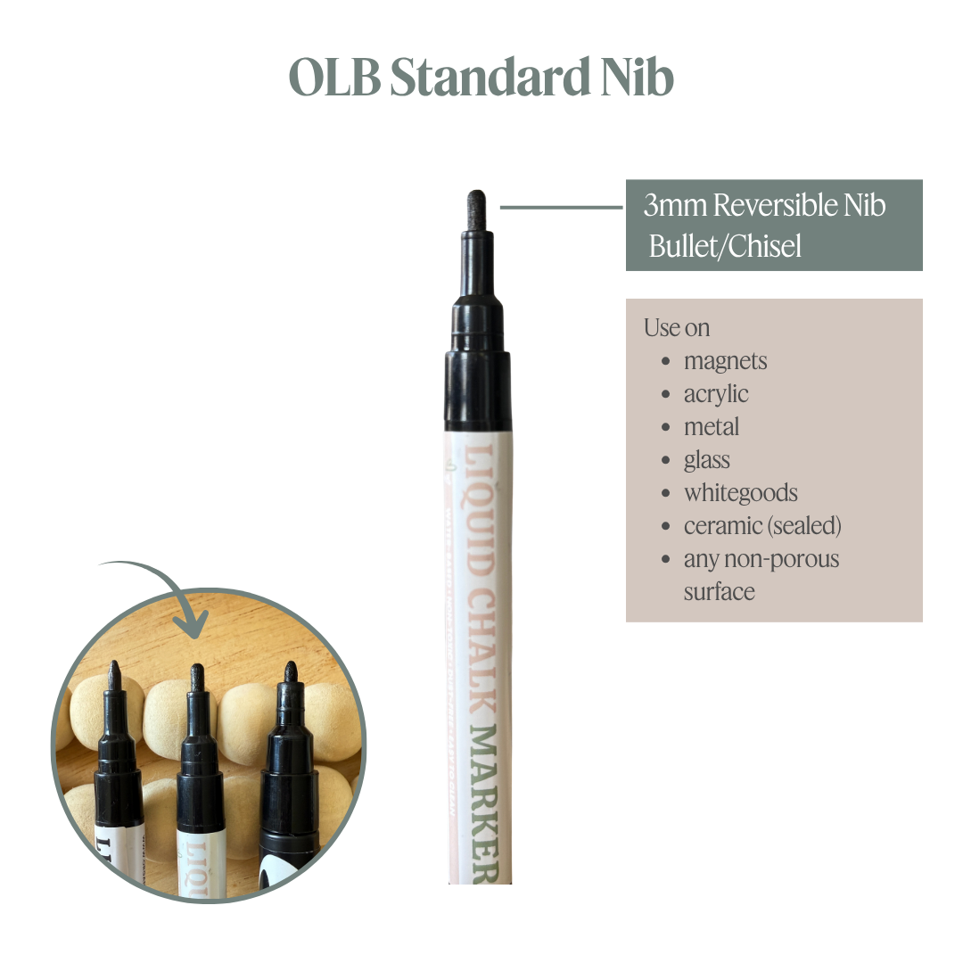 - OLB Standard (3mm reversible nib – bullet/chisel)