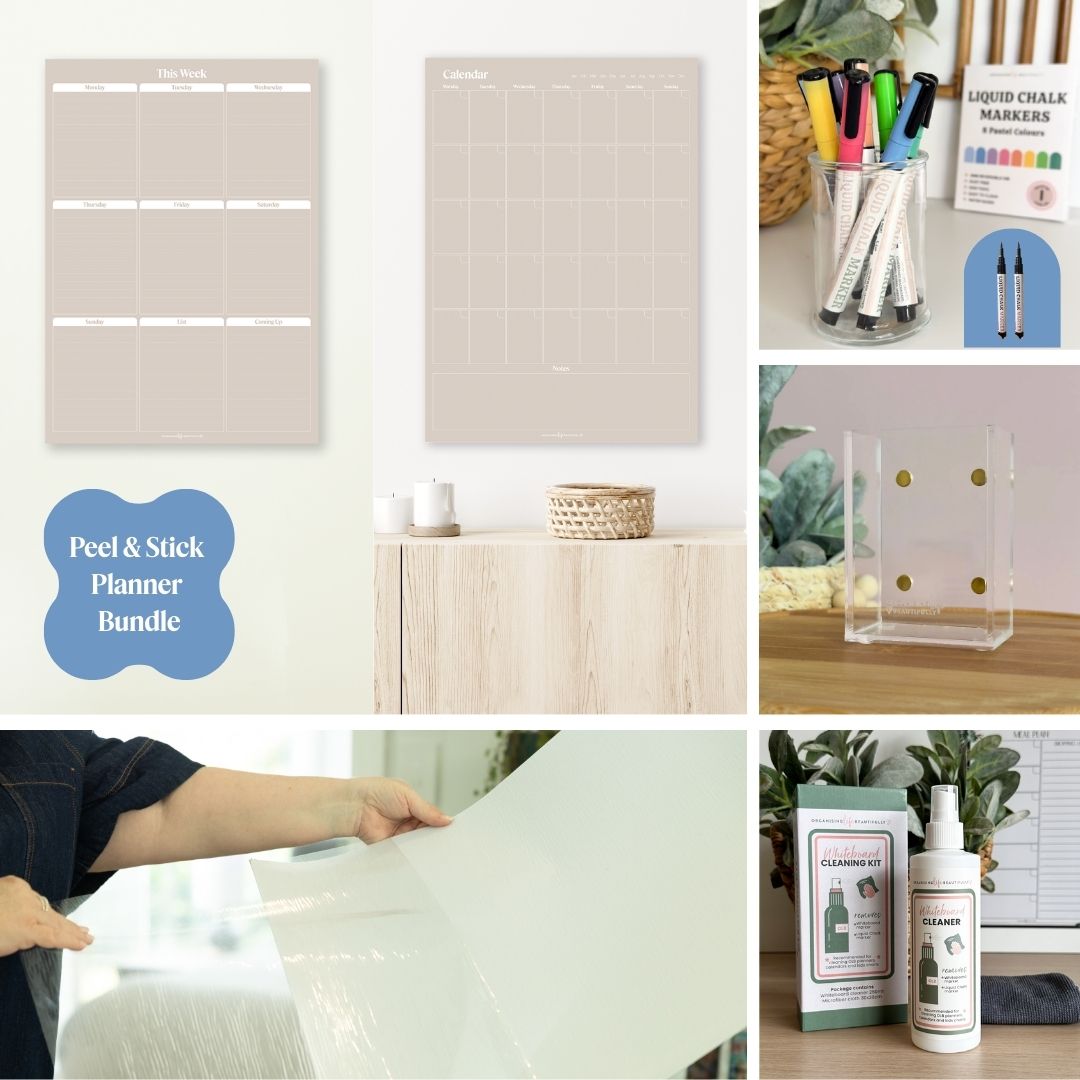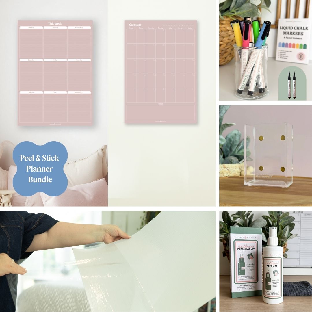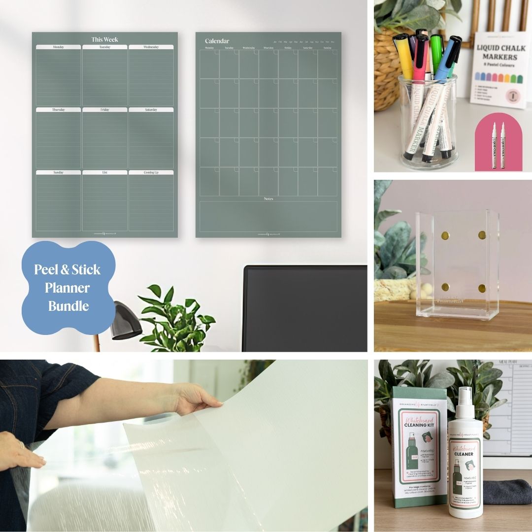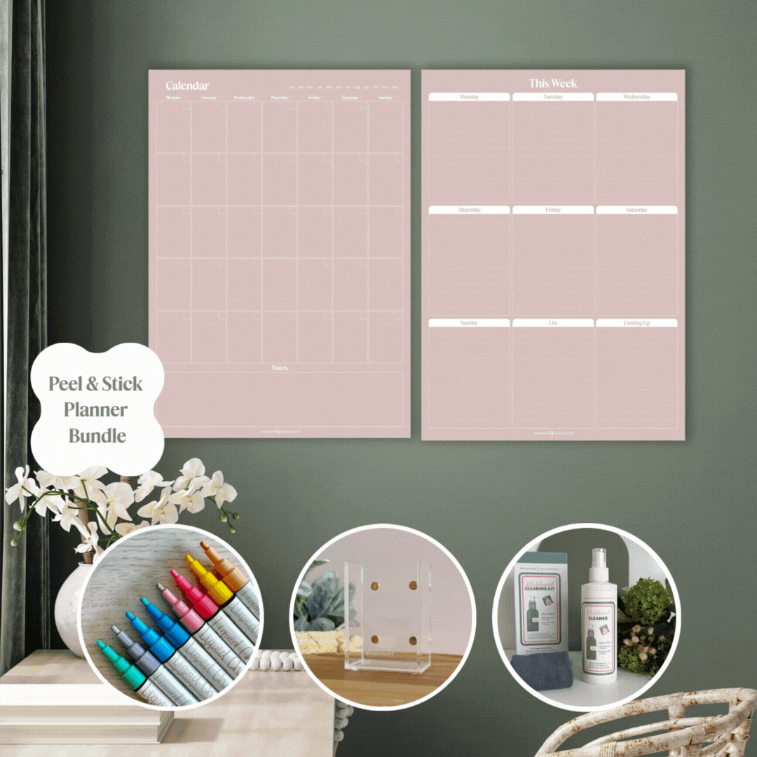 The Peel & Stick Family Essentials Bundle has everything you need to organise your month, plan your week, and manage the mental load without clutter or confusion. Designed for families, busy professionals and visual planners who want their days to feel calmer and more in control and organise away from the fridge.