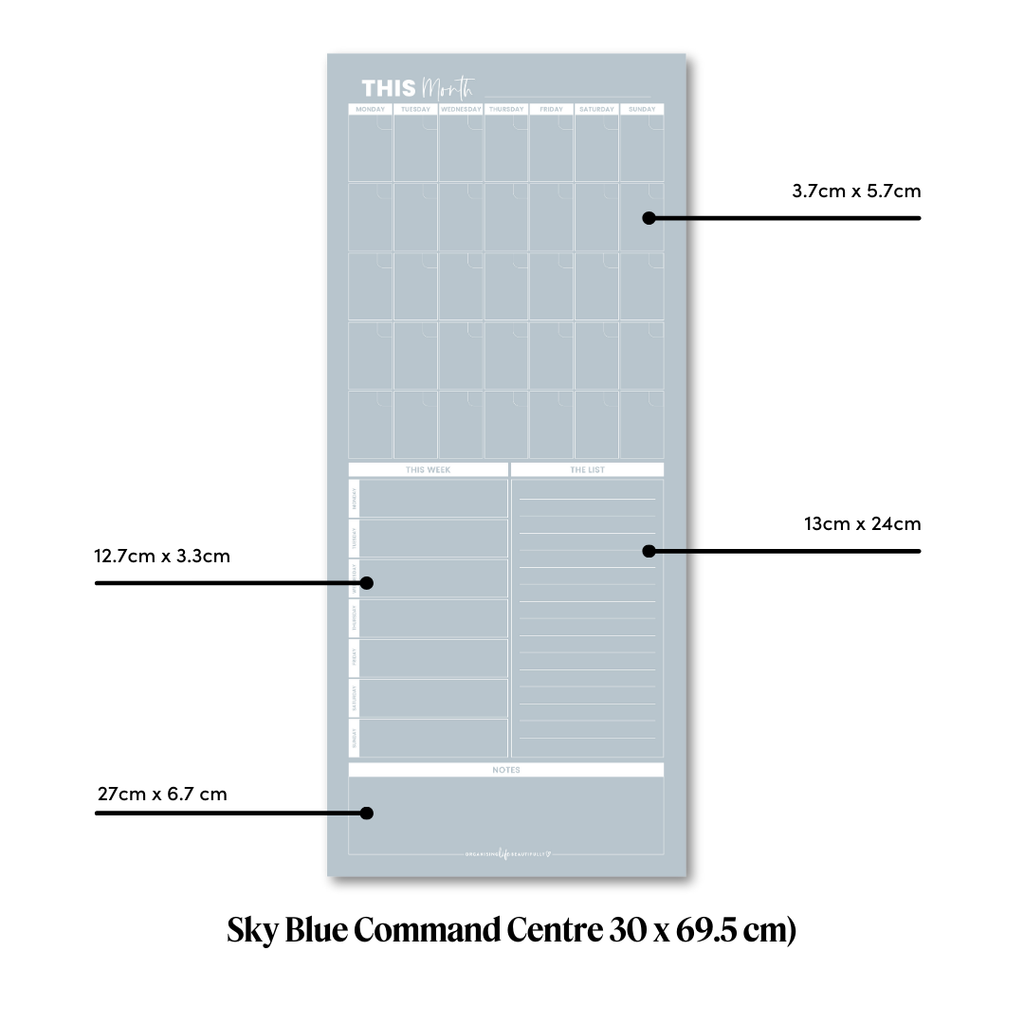 30x70cm Magnetic Family Command Centre – with a calendar, weekly planner, to-do list, and notes section, so you can see your whole month at a glance.