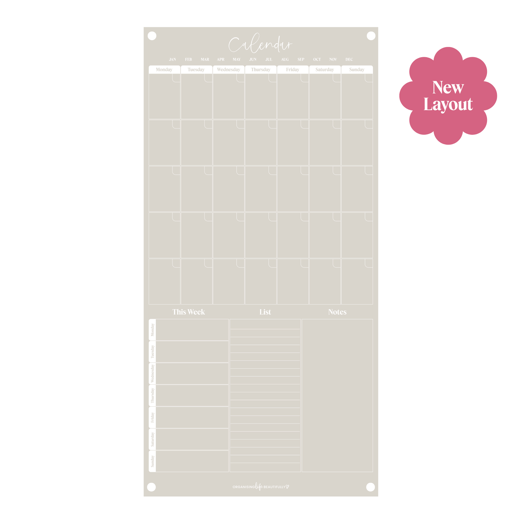Combines a monthly calendar, weekly planner, list, and notes section NEW LAYOUT NOW AVAILABLE - Meal planner no longer included.