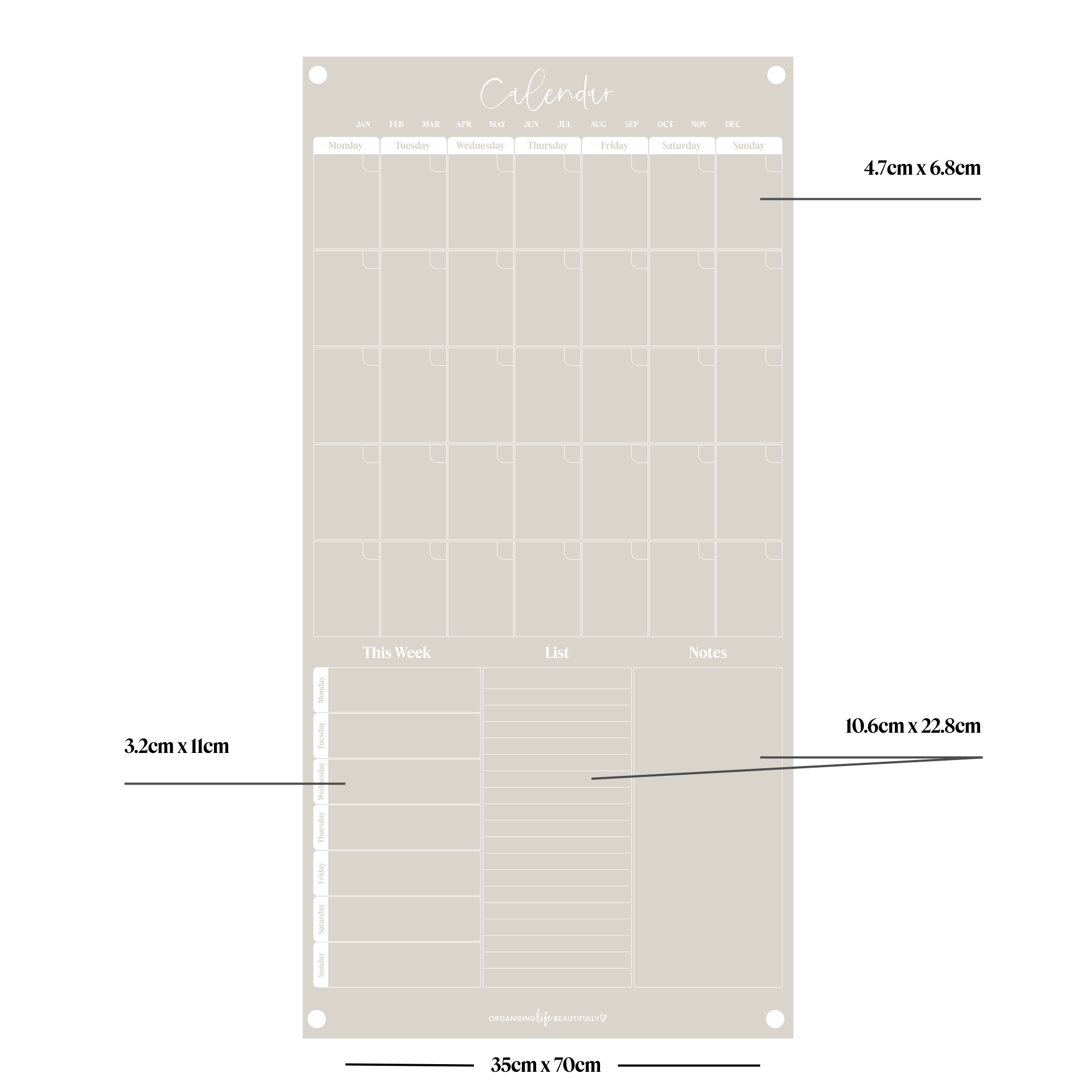 Bundle | Wall Hub Family Wall Organiser Kit – Calendar, Weekly, List, Memo & Magnetic Bar – Stone