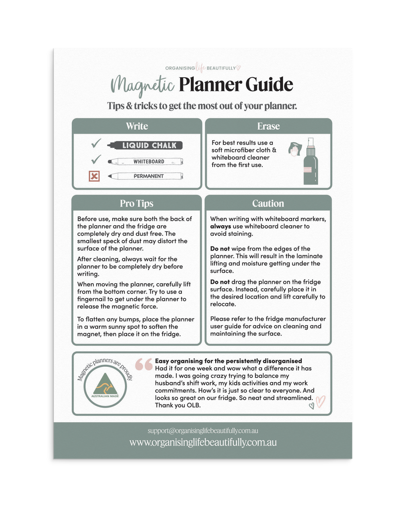 Learn how to use and care for your Organising Life Beautifully products with our handy user guides.