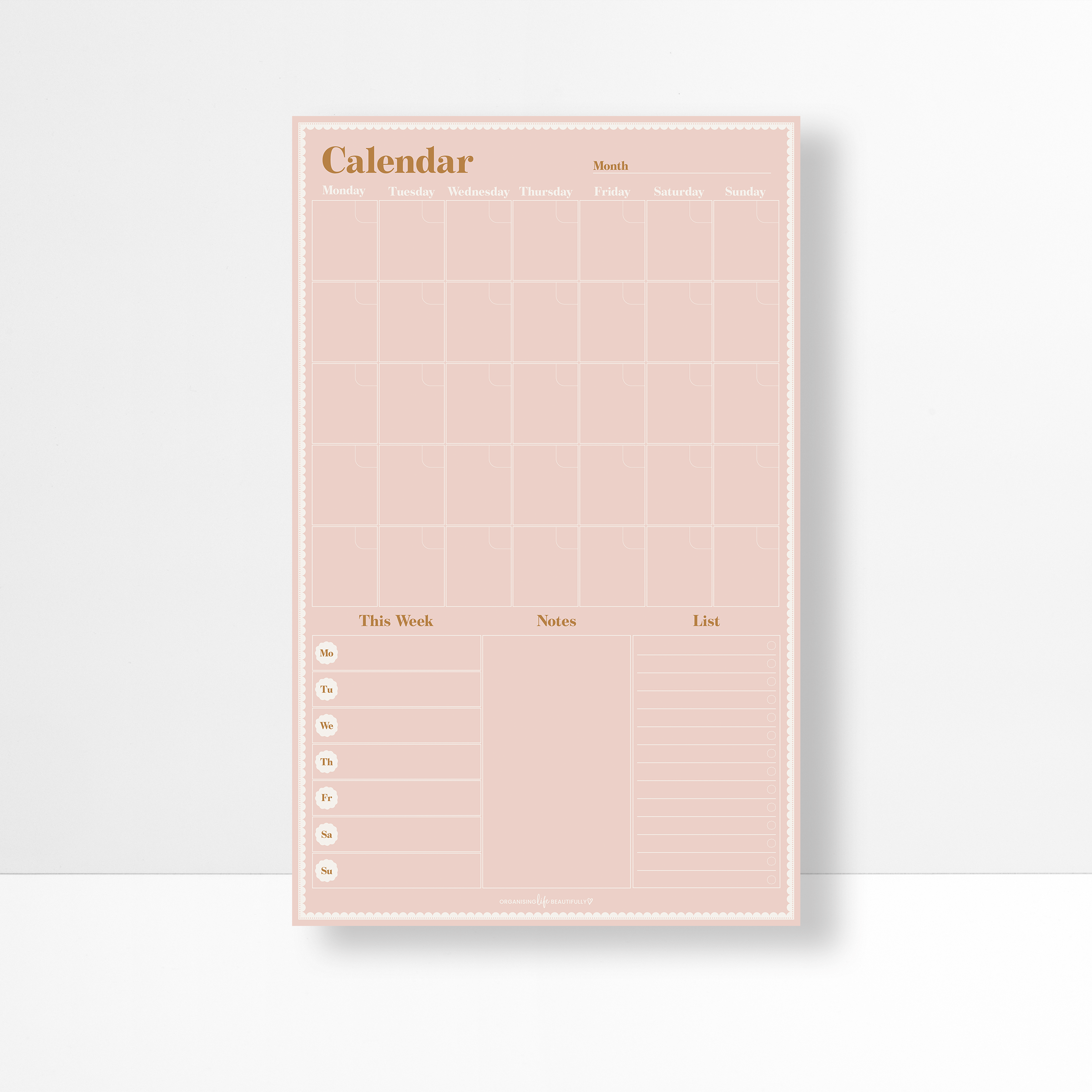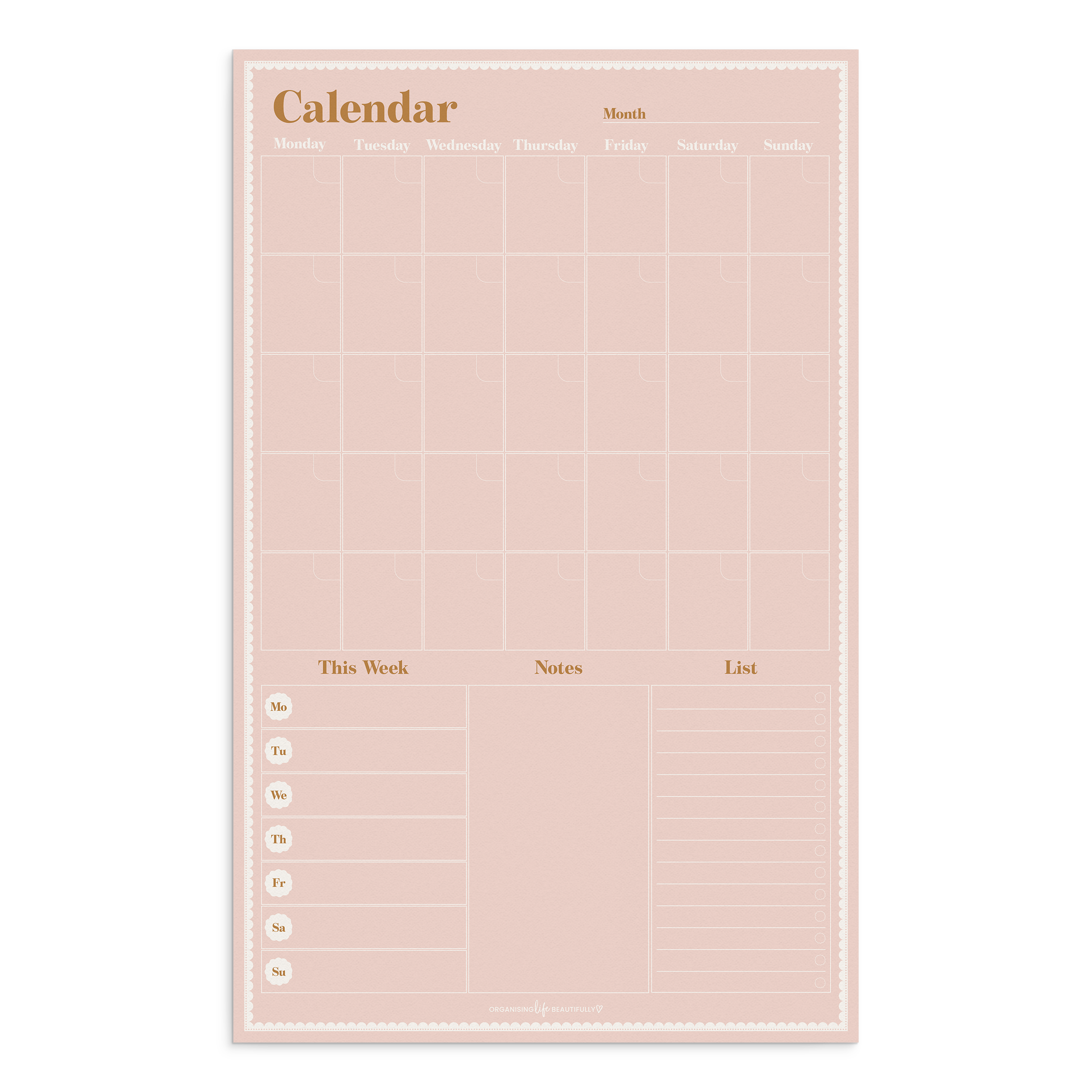 • Layout Options: Monthly calendar or weekly planner with list + notes