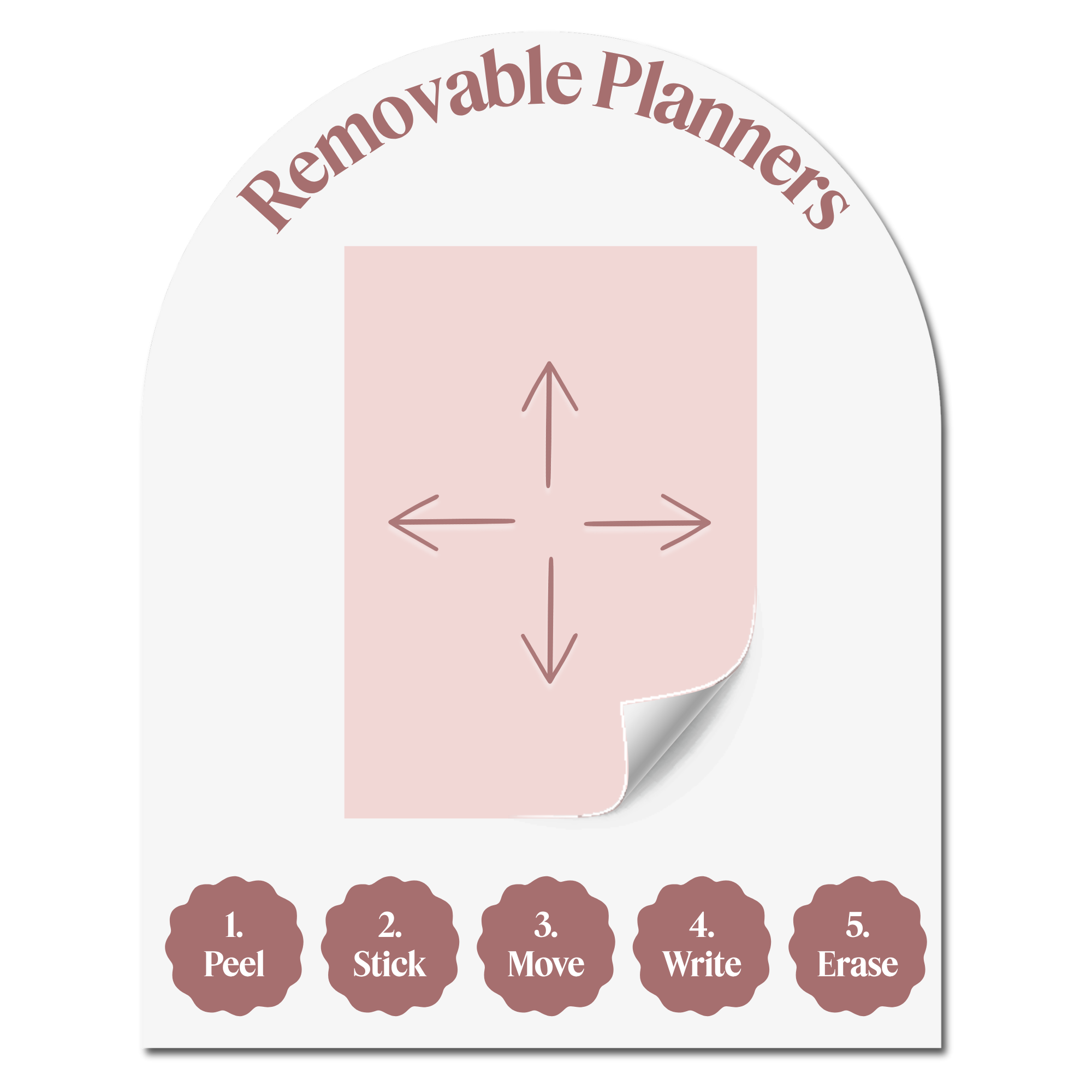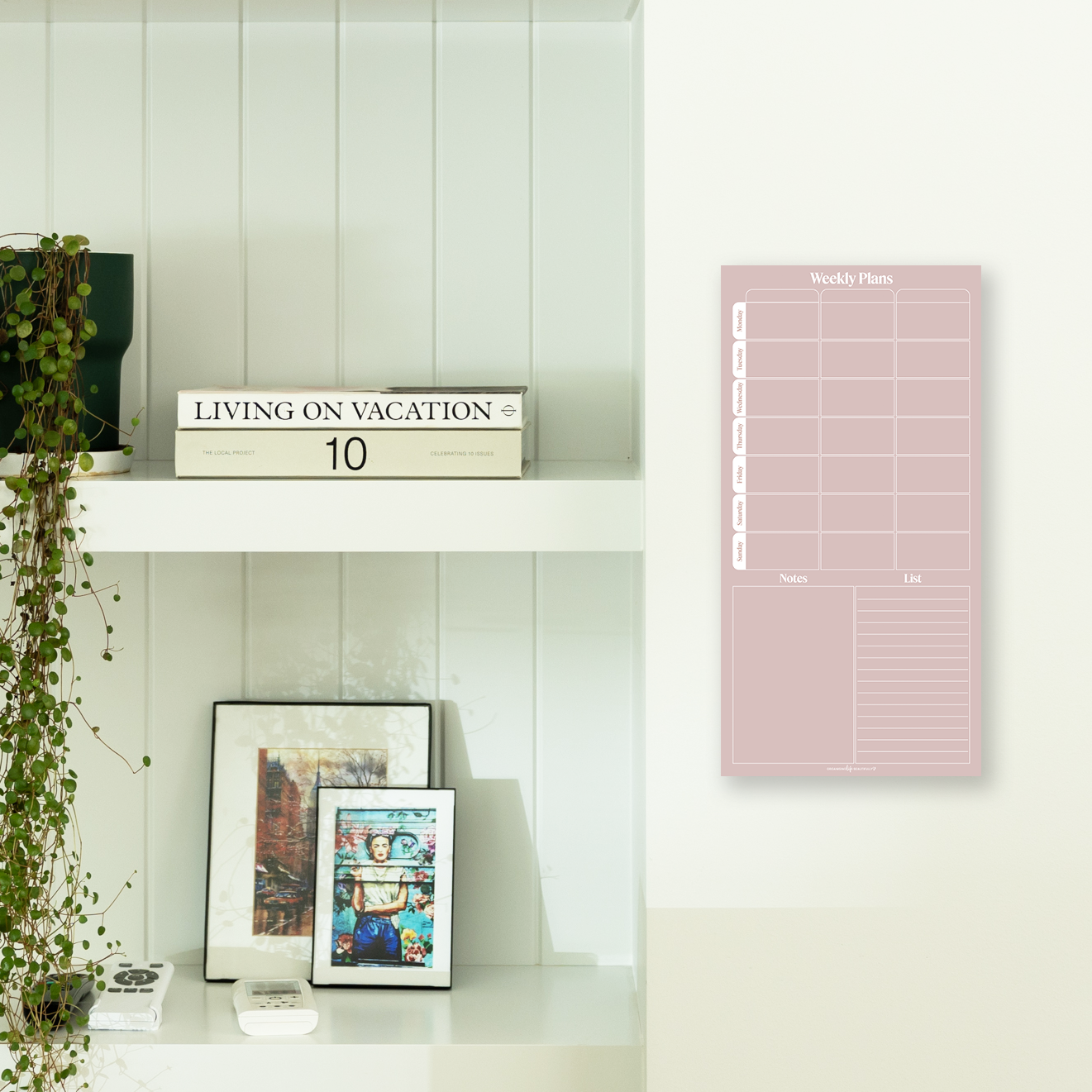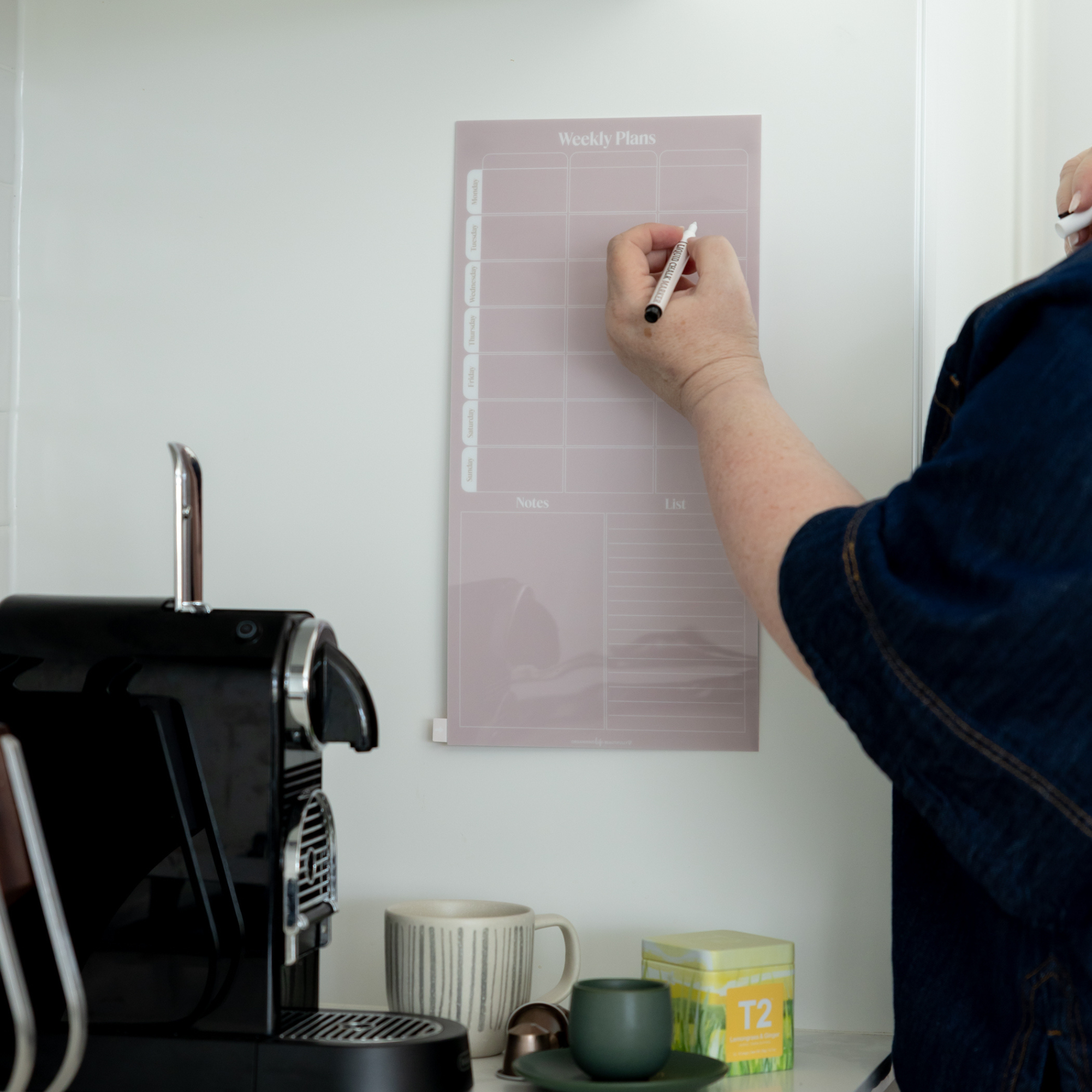 Designed to suit every lifestyle and space, these planners stick firmly to most smooth surfaces (like fridges, doors, cupboards, glass, white-goods and more), and can be repositioned as needed. No magnets, no frames, and no wall damage.