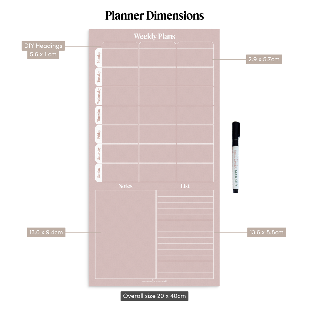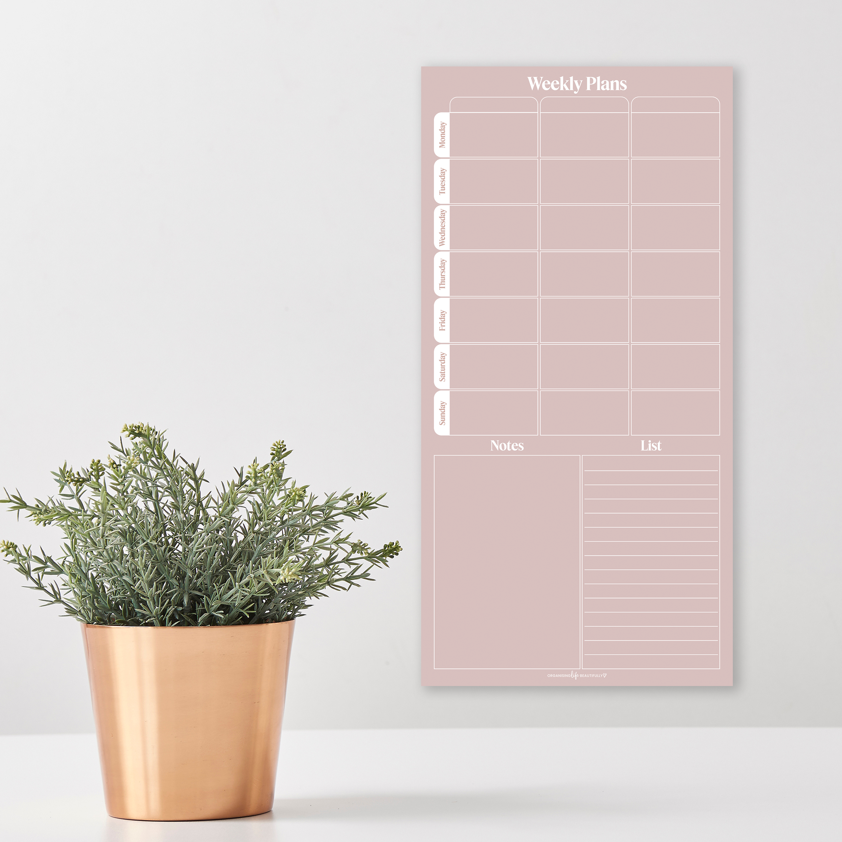 Peel & Stick Wall Planner | Reusable Weekly Schedule • 20x40cm • Rose